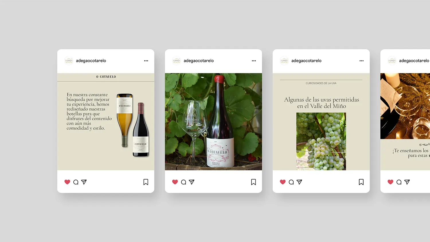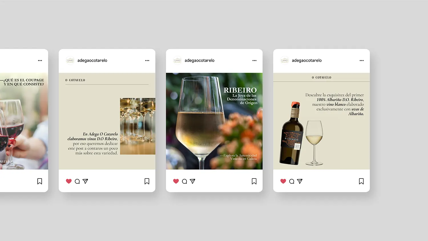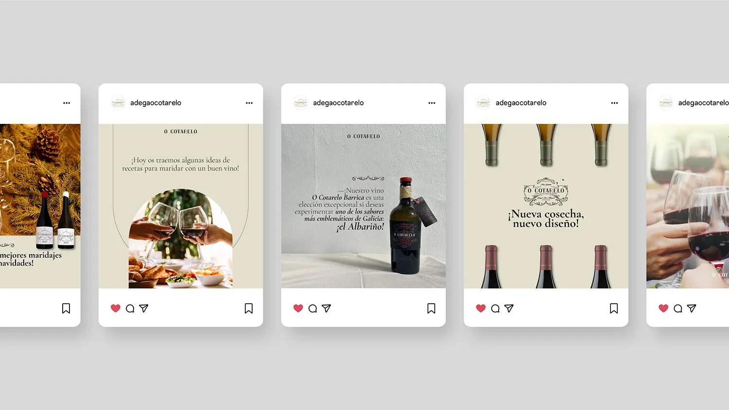 Llevamos a cabo la gestión integral de redes sociales para Adega O Cotarelo, partiendo de un análisis estratégico de la marca, su posicionamiento y sus competidores en el sector vinícola. A partir de este estudio, definimos las líneas de comunicación principales, orientadas a reforzar la identidad de la bodega y transmitir sus valores con coherencia y personalidad.